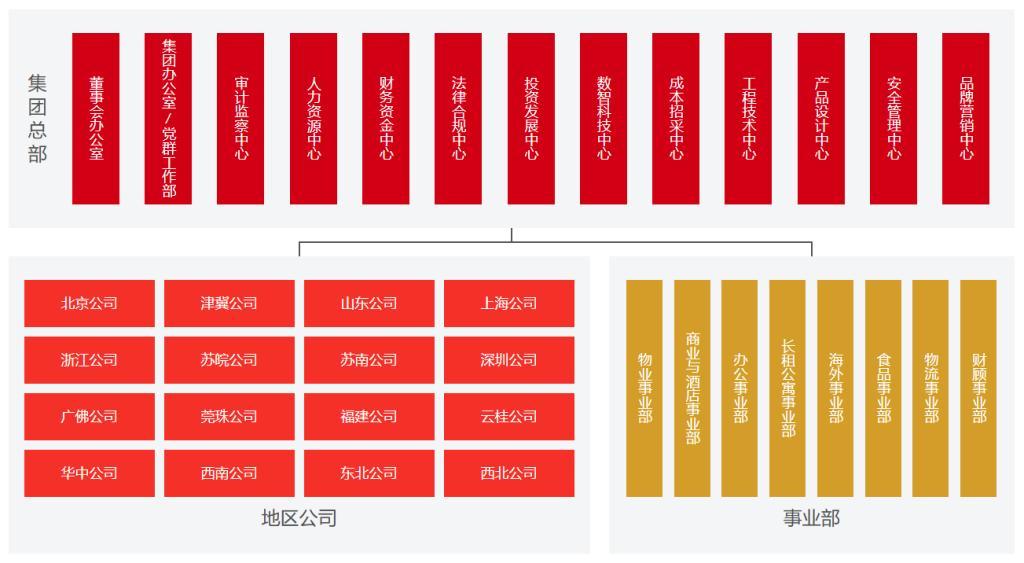 集团总辖下设董事会办公室等11个中心;地区公司由原“5+2+2”架构(五大区域、两个总公司、两个直管公司)报复为16个地区公司,由总部获胜收制;奇迹部则涵盖物业、物流、生意、长租公寓等八大多元化业务板块。联系中枢管制东说念主员亦同步败露。